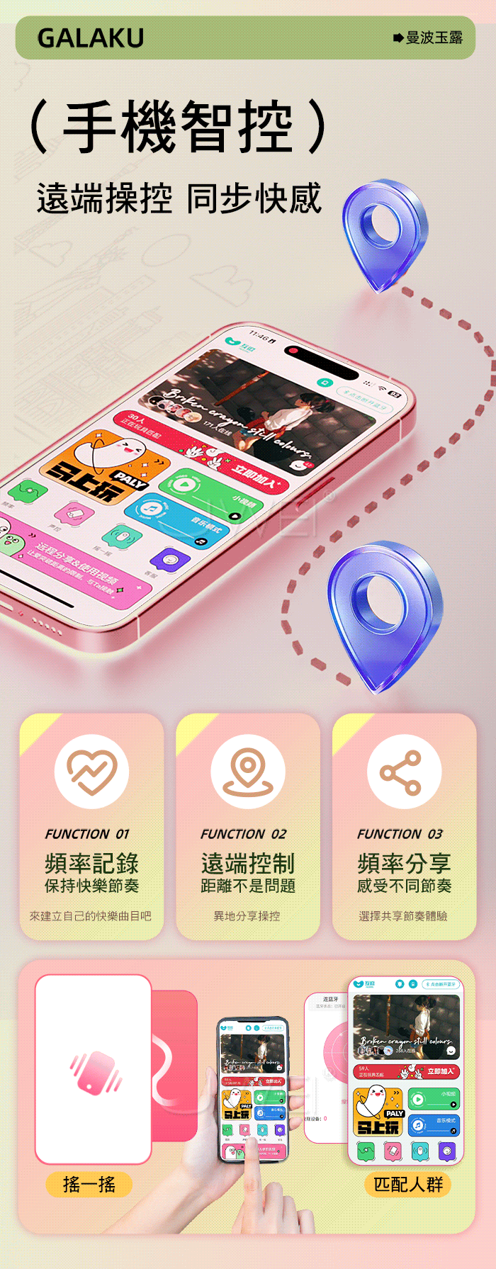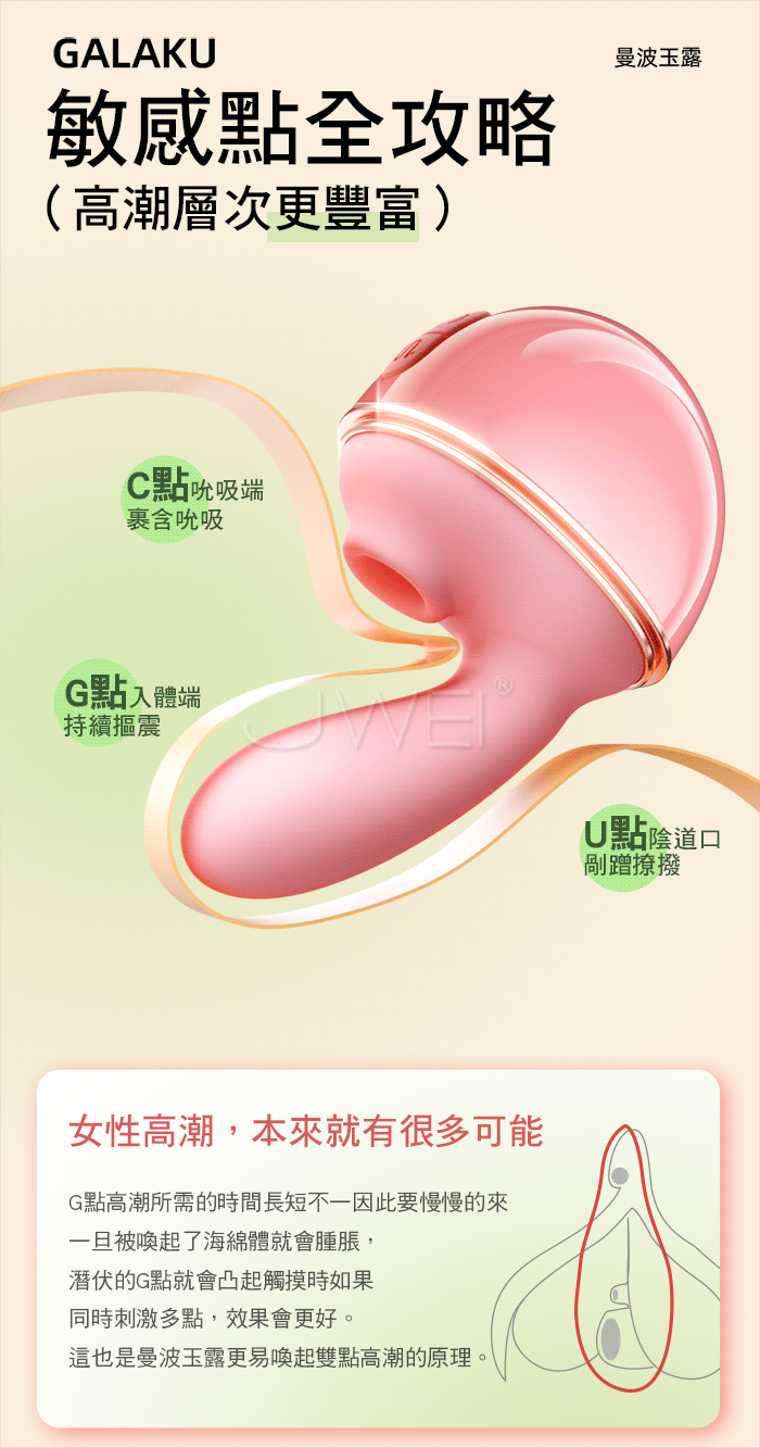GALAKU.曼波玉露 10頻靈指摳動+大口吮吸 雙潮喚起智能遠控變頻跳蛋【粉色】
