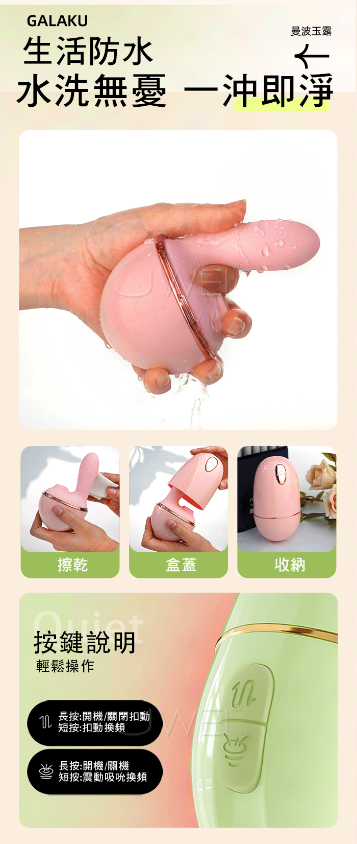 ►您現在的位置:首頁>GALAKU.曼波玉露 10頻靈指摳動+大口吮吸 雙潮喚起智能遠控變頻跳蛋【綠色】
