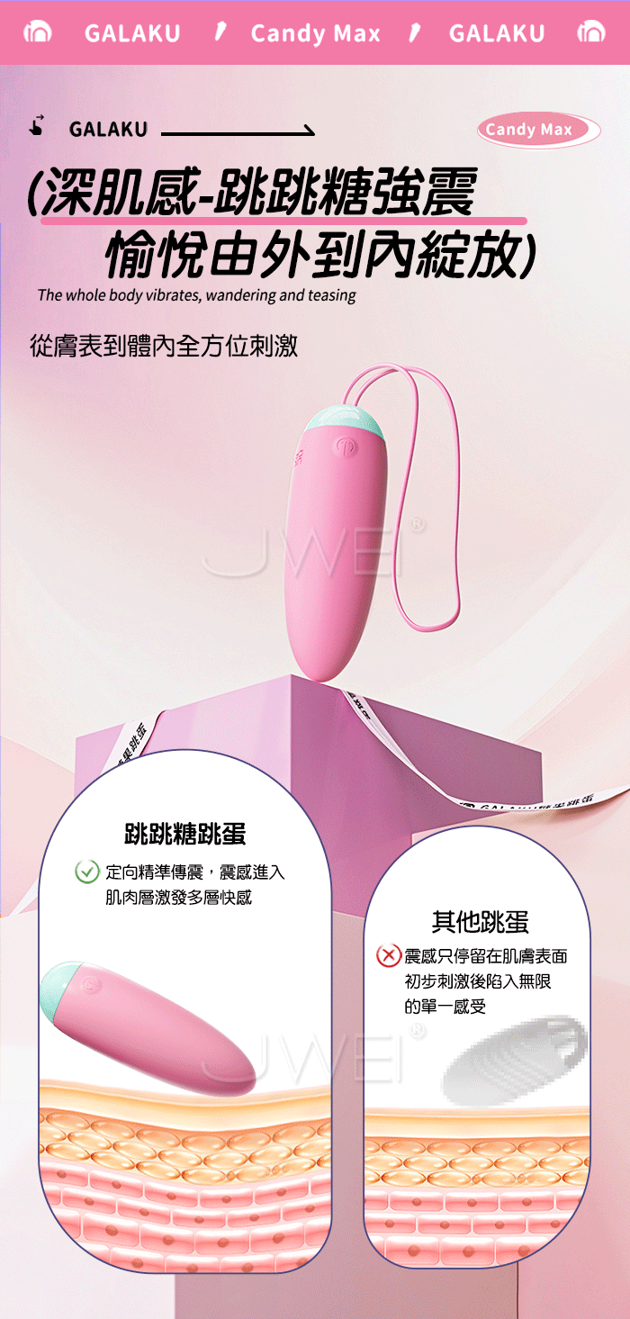 GALAKU.跳跳糖 3頻爆跳穿透強震 深肌快感 加厚矽膠變頻跳蛋【基礎款-粉色】