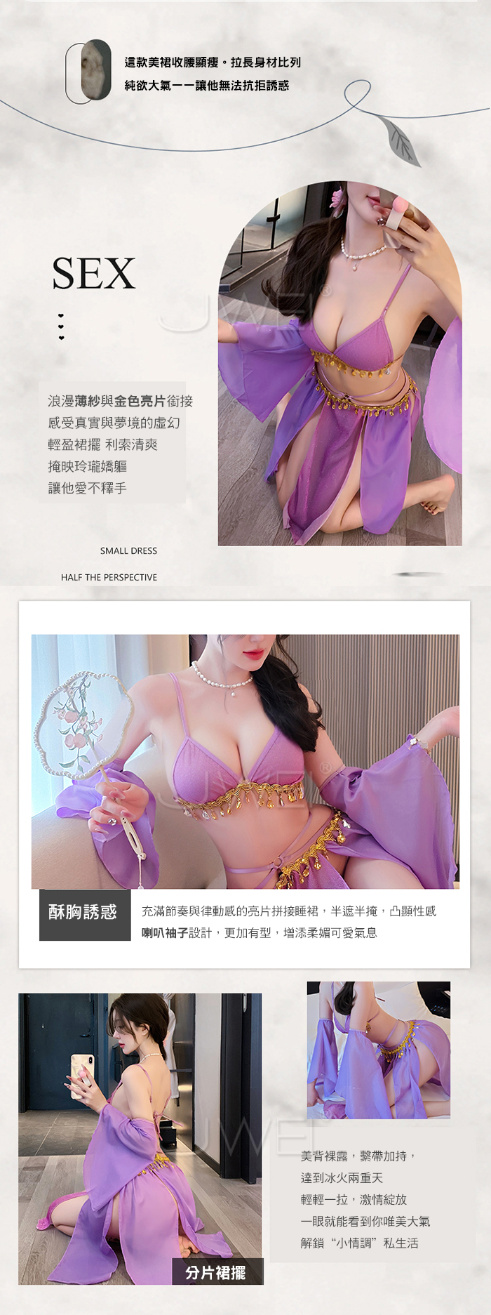 ■內容物:胸罩+短裙+T褲+袖子*2 ■適穿尺寸:FREESIZE ■彈性:有 ■未撐開平量尺寸正負誤差1~2cm,1吋=2.54cm ■注意事項:基於保障消費者個人衛生,此貼身衣物恕不接受退換貨。 (如為商品本身暇疵,接受七日內換貨,請勿試穿,謝謝您)