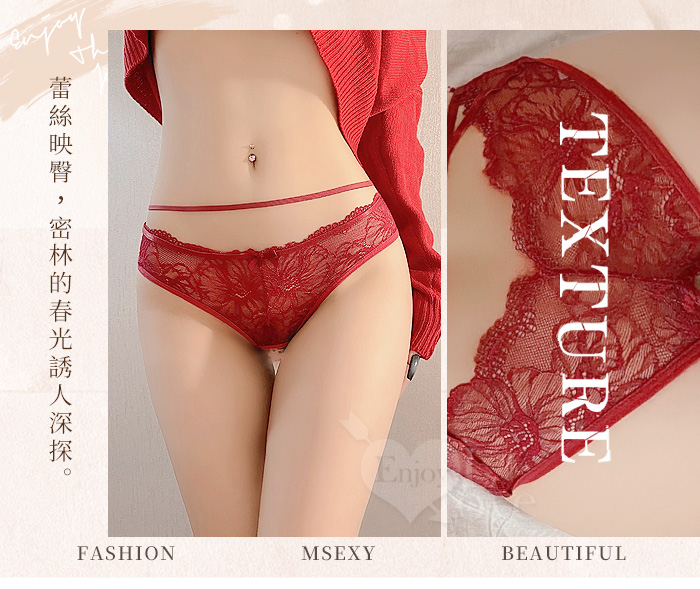 空氣感花蔓透紗·纏腰細帶|開襠免脫情趣內褲﹝紅﹞