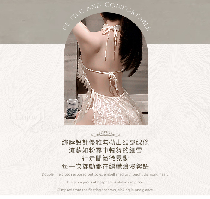 | 情趣睡衣!透視睫毛花卉蕾絲拼接流蘇飄逸裙擺兩件組