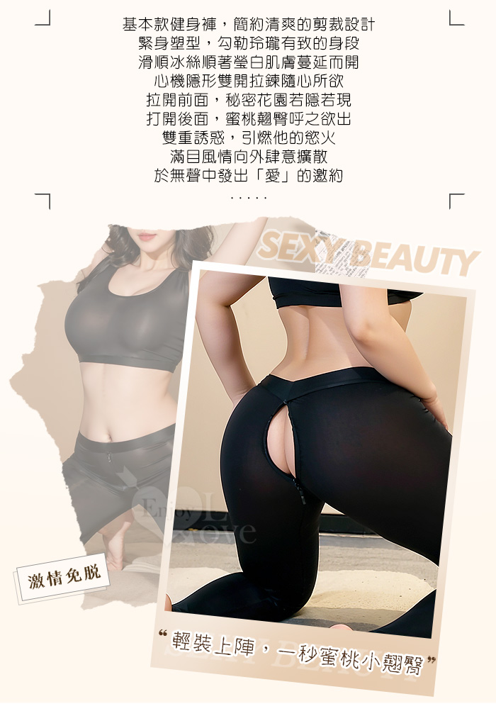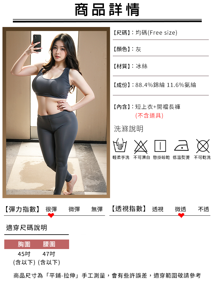 【棉花糖女孩】大尺碼情趣睡衣!冰絲順滑緊身小可愛 × 雙頭拉鍊免脫瑜珈褲|機能二件組﹝灰﹞