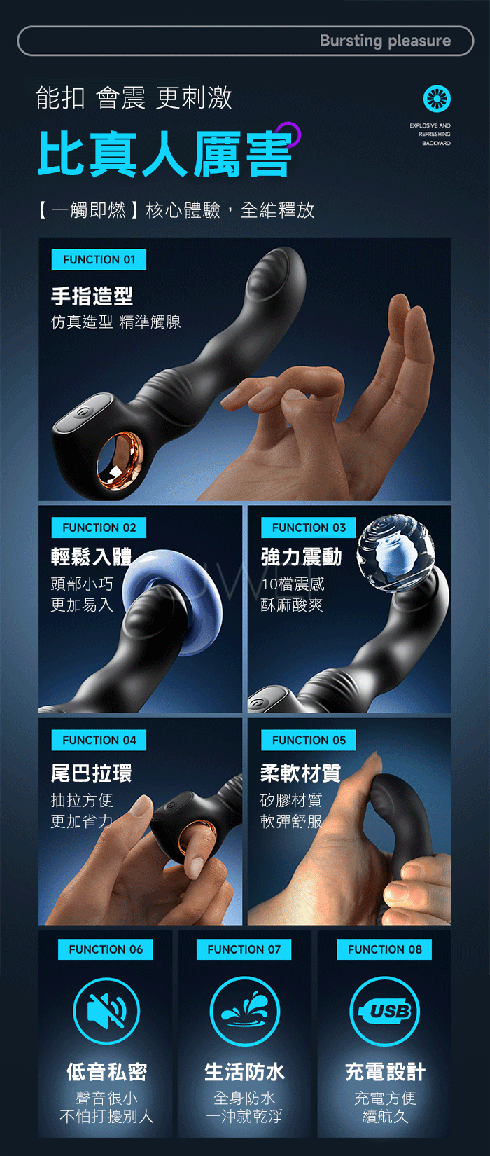 暴爽後庭,不射也能高潮,指尖的慾望,直抵祕境深處... 從酥麻撩撥到瘋狂撞擊,由您掌控快感節奏 能扣 會震 更刺激,比真人厲害【一觸即燃】核心體驗,全維釋放 多頻模式澎湃動力,10頻靈魂震顫,總有一檔能精准擊中您的興奮點 ■尺寸:大小詳如圖片標示 ■材質:矽膠+ABS ■功能:10頻震動