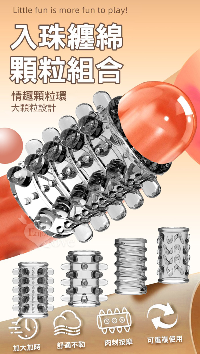 好戰4潮套.入珠纏綿顆粒組合~鎧甲延時鎖精陰莖加強環~成人性趣輔助用品-4款體驗裝﹝透明黑﹞