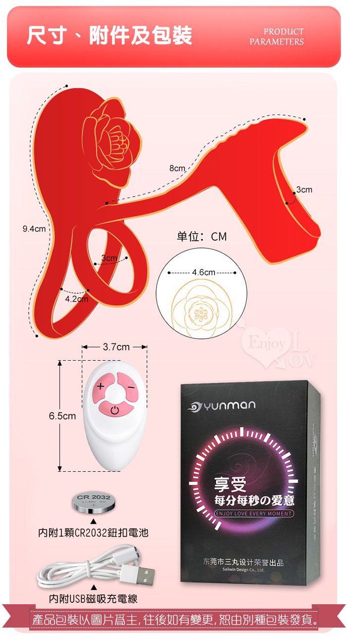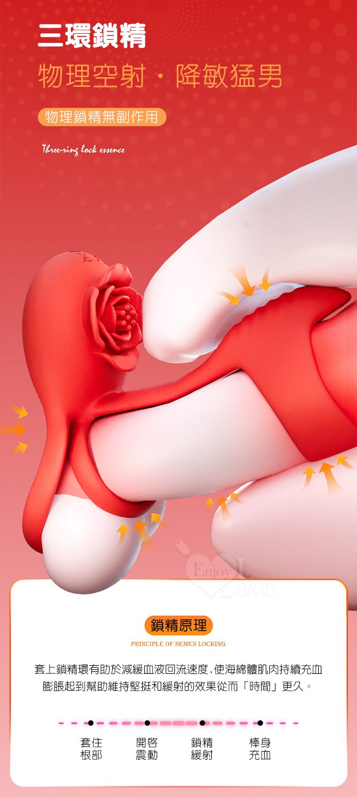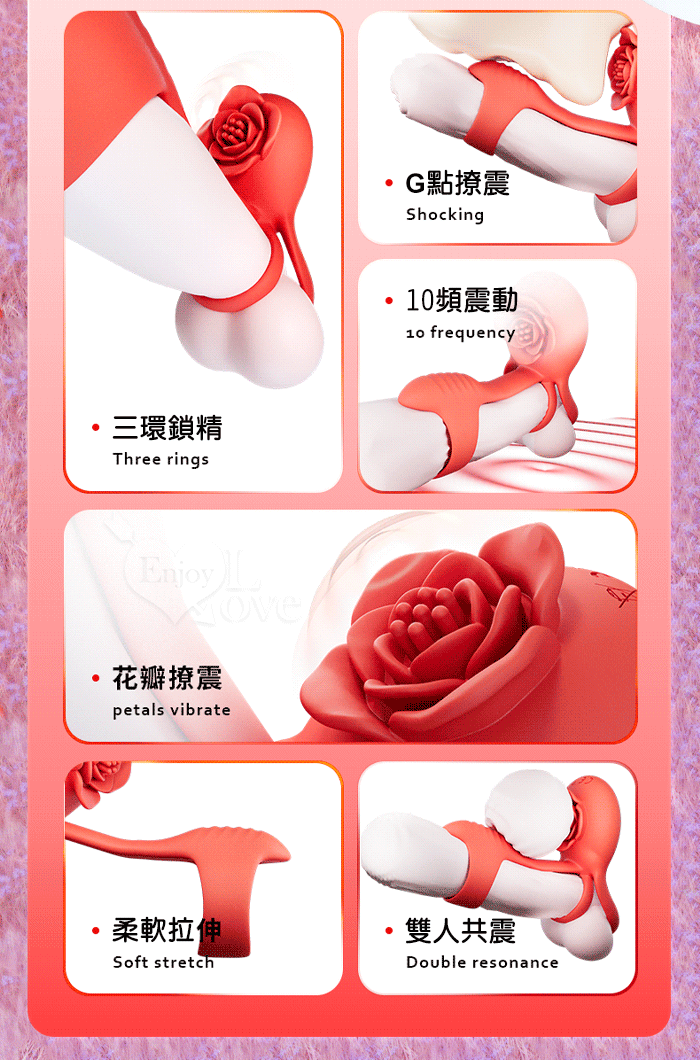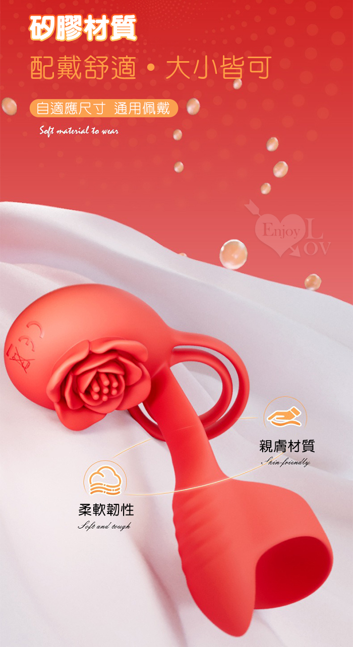 | YUNMAN 云曼 ‧ 玫瑰內外雙震加強套環﹝無線遙控/男女共爽/10頻双強震/3環鎖精固蛋/花瓣撩撥蜜豆/矽膠舒適﹞