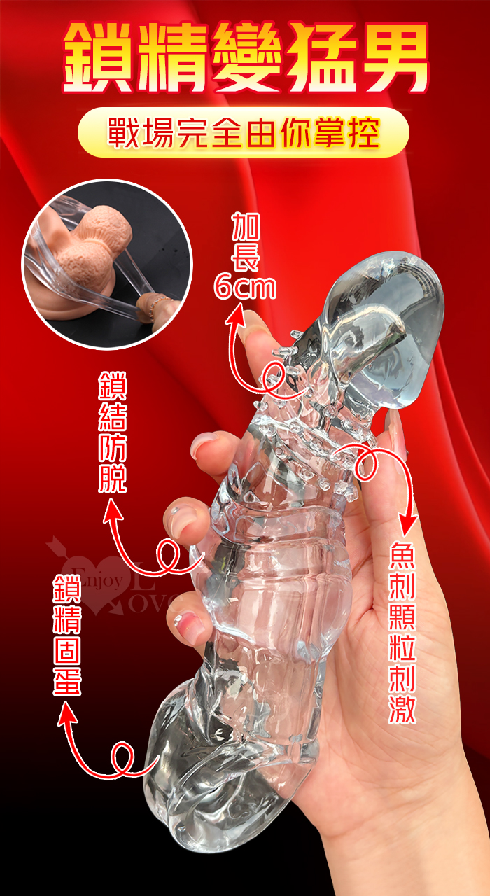 | 取悅 ‧ 鱼刺套 顆粒刺激~長時堅挺~前端實心變粗變大加強套﹝增長6公分+凸粗+束精+套蛋﹞