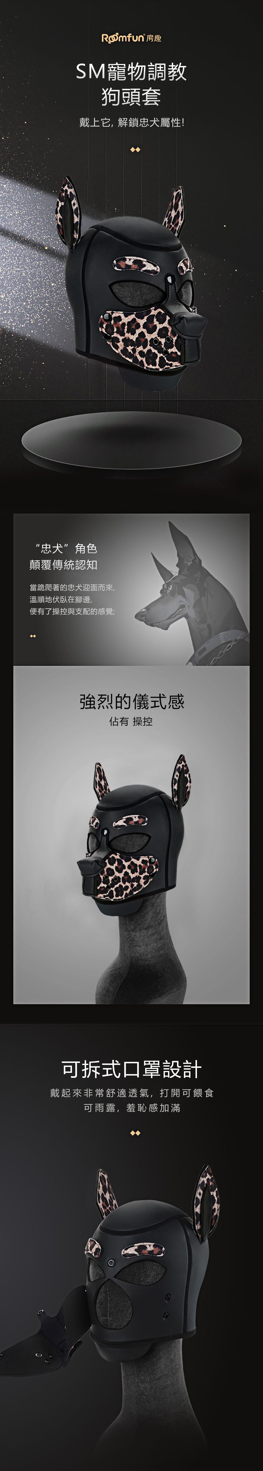 | Roomfun SM寵物調教狗頭套-豹紋款