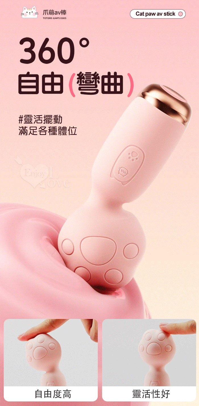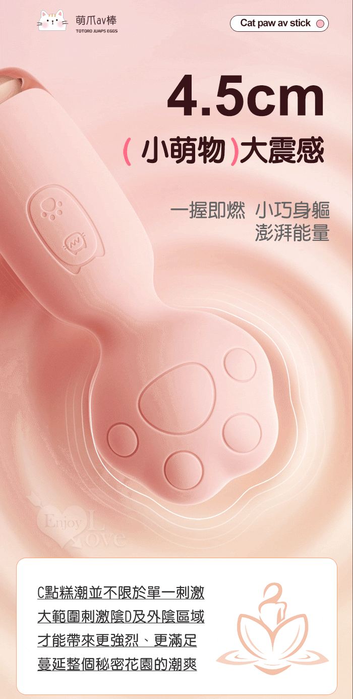 ROSELEX 萌爪AV棒 ‧ 可愛小貓爪加溫震動棒-10頻震動陰蒂刺激調情自慰 - 粉
