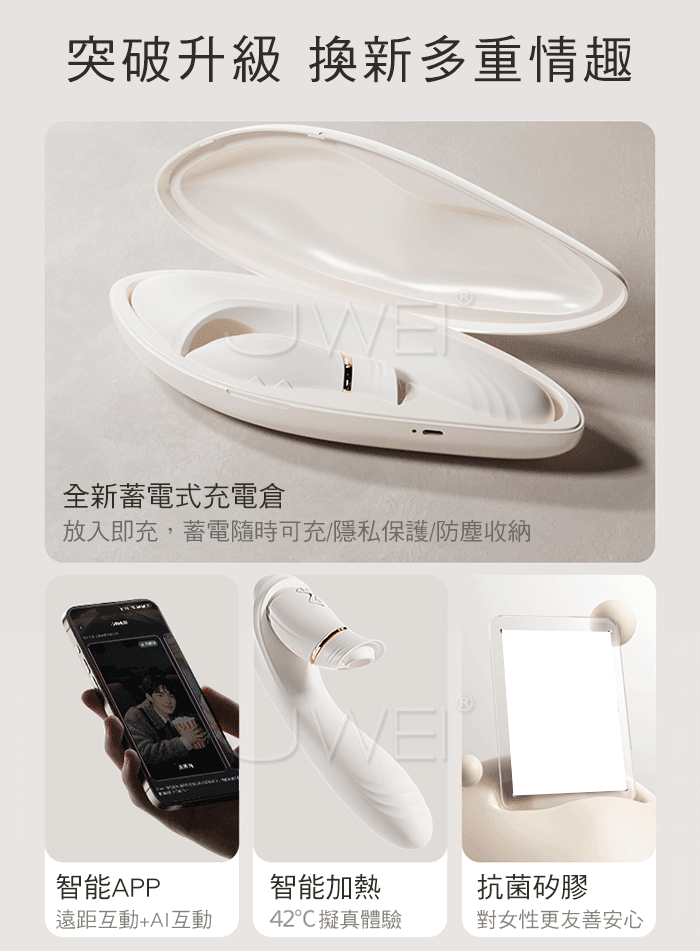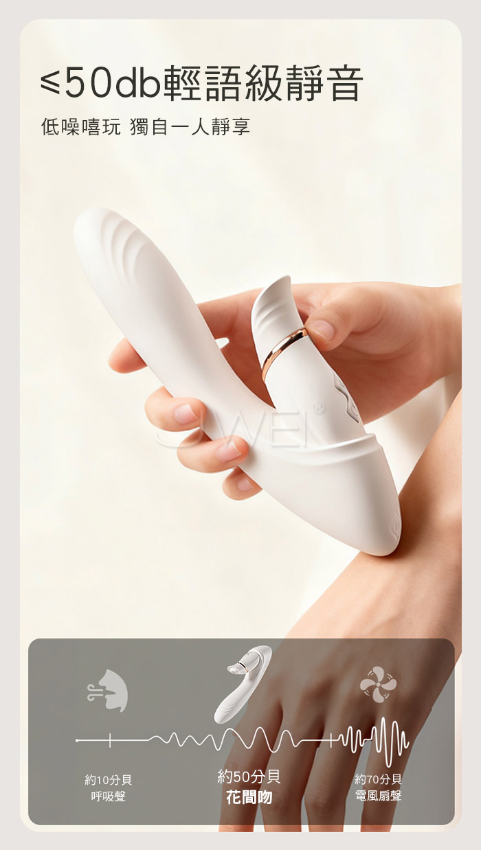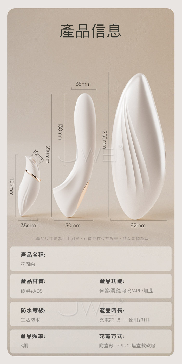 | 花間吻.6x6頻伸縮強震深吻吮吸 分離式加溫智能遠控按摩棒【基礎款】