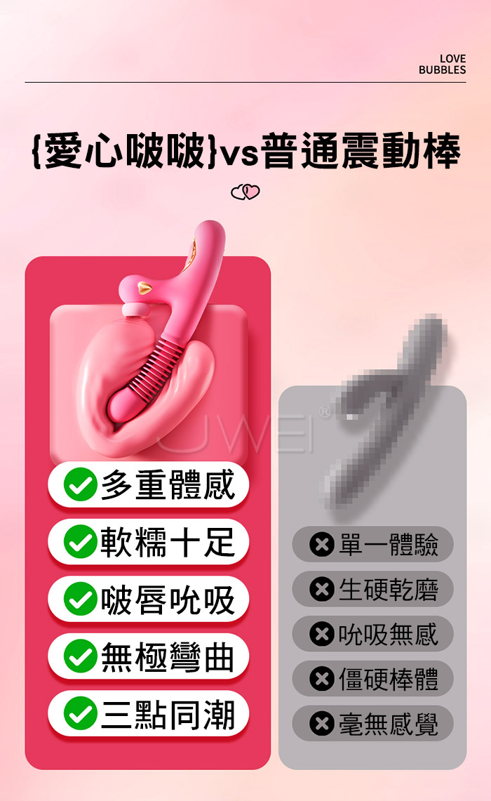 | 愛心啵啵.7頻伸縮頂震+5頻深吻真吸 環片剮蹭真人體溫按摩棒
