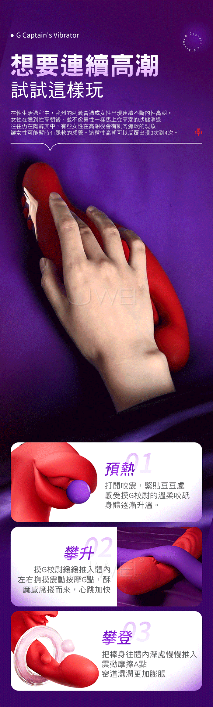 ►您現在的位置:首頁>摸G校尉.3段咬合狂舔+10頻頂震A點 小頭搖擺摸G擬真加溫按摩棒