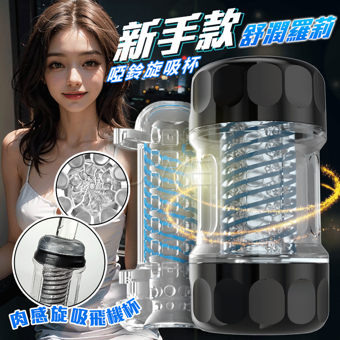 GALAKU.啞鈴旋吸杯 誘惑御姐 肉感旋轉手動負壓吮吸降敏飛機杯-口愛款【黑色】