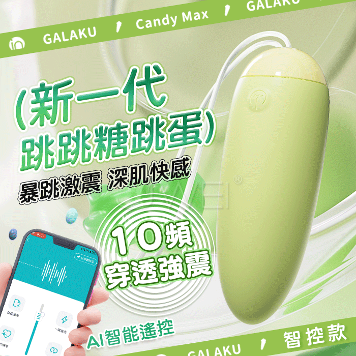 GALAKU.跳跳糖 10頻爆跳穿透強震 深肌快感 加厚矽膠變頻跳蛋【AI智控款-綠色】