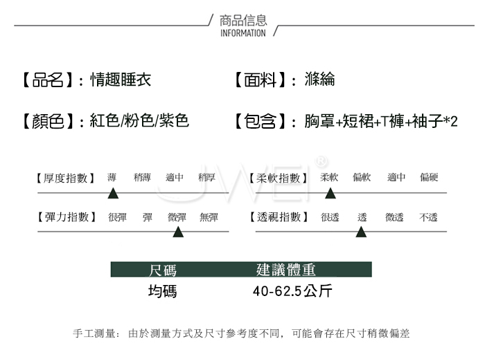 2.基於保障消費者個人衛生,情趣衣物類恕不接受退換貨,如為商品本身暇疵,接受三日內換貨,請勿試穿。