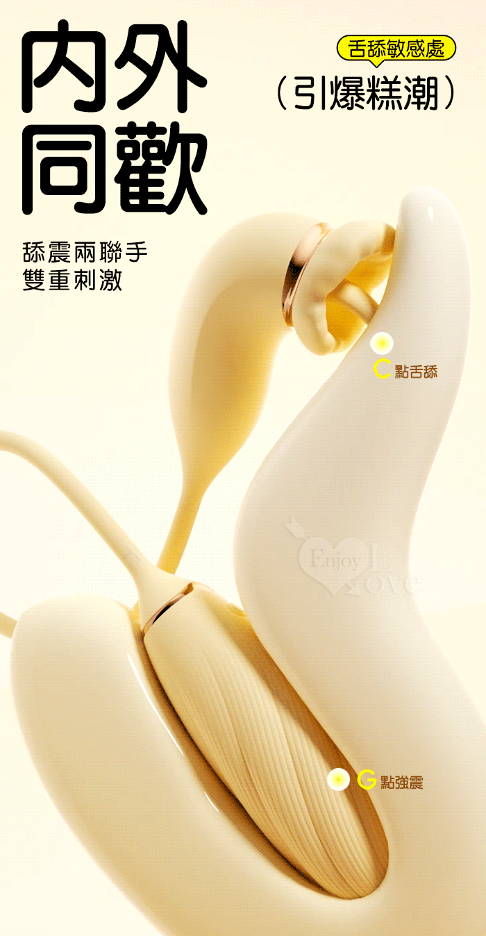 | JIUAI 枕邊玩物系列 ‧ 小心肝 內外刺激雙馬達G點加溫按摩棒﹝舌尖震顫+10頻激震+柔軟任彎+USB充電﹞粉