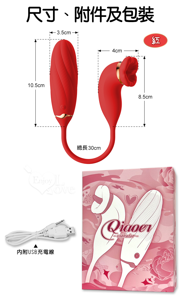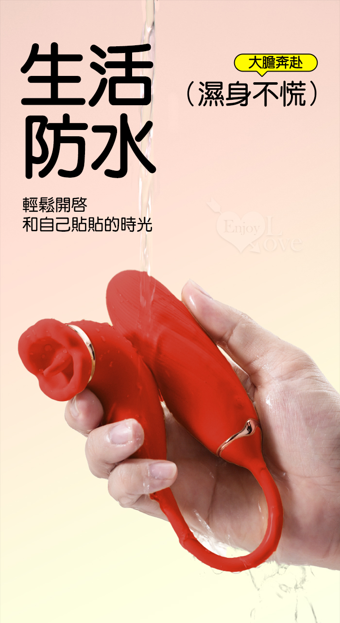| ROSELEX 俏兒 ‧ 魔舌蜜嘴狂撩+長跳蛋 舔震聯手雙組合按摩器﹝花樣玩法/10頻強震/內外同享潮吹/親膚矽膠﹞紅