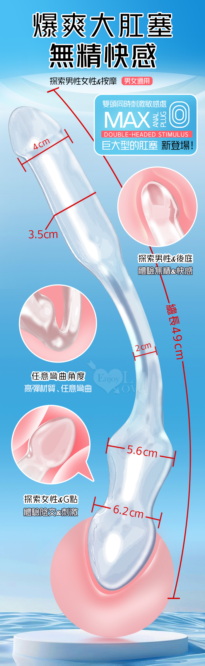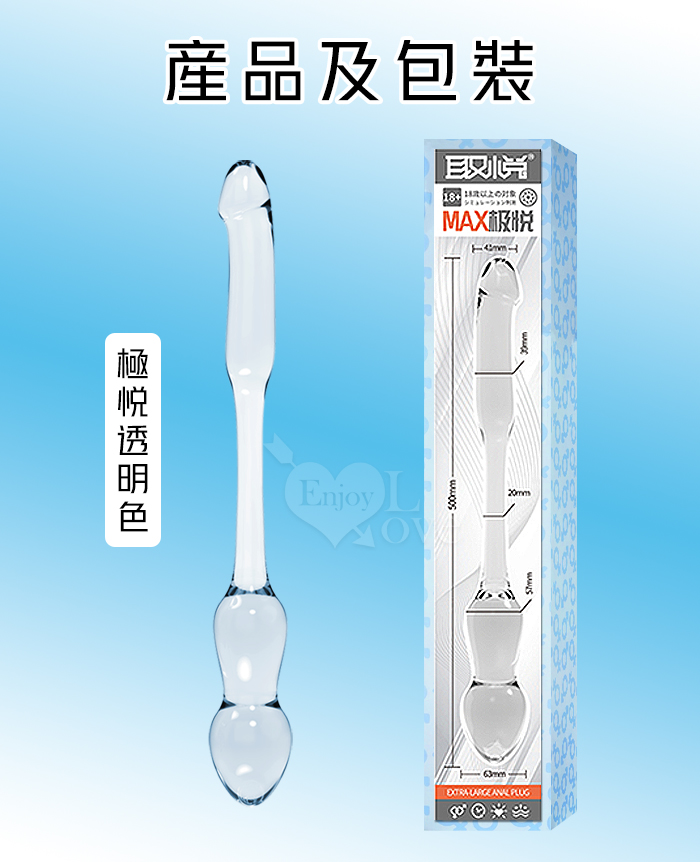 取悅 ‧ MAX極悅!XL巨大型雙頭水晶按摩棒-前陰後庭/男女皆適用﹝透明色﹞