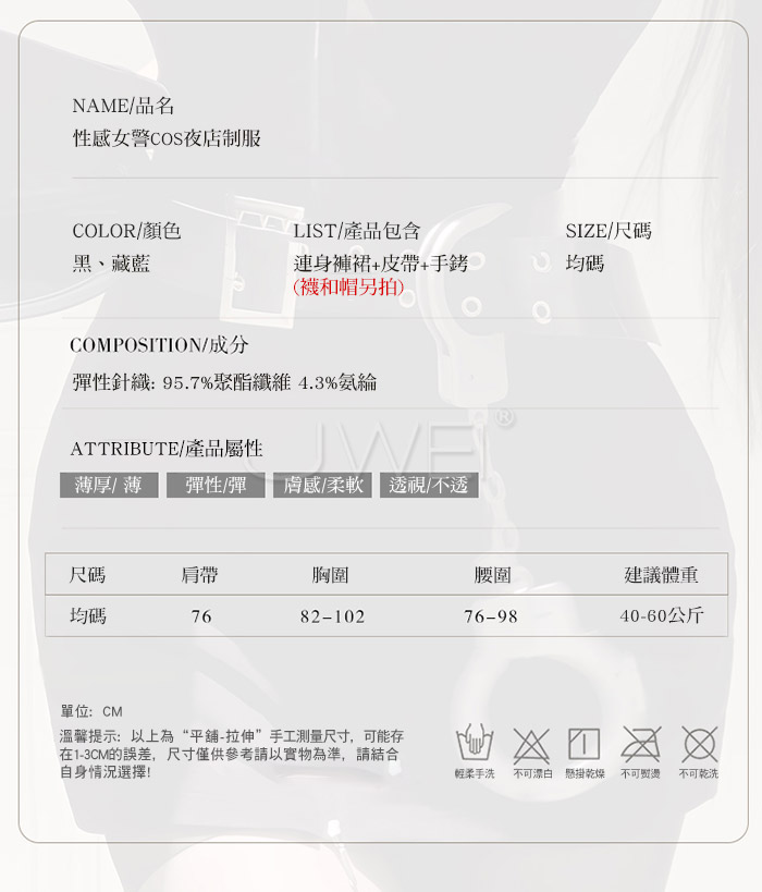 2.基於保障消費者個人衛生,情趣衣物類恕不接受退換貨,如為商品本身暇疵,接受三日內換貨,請勿試穿。