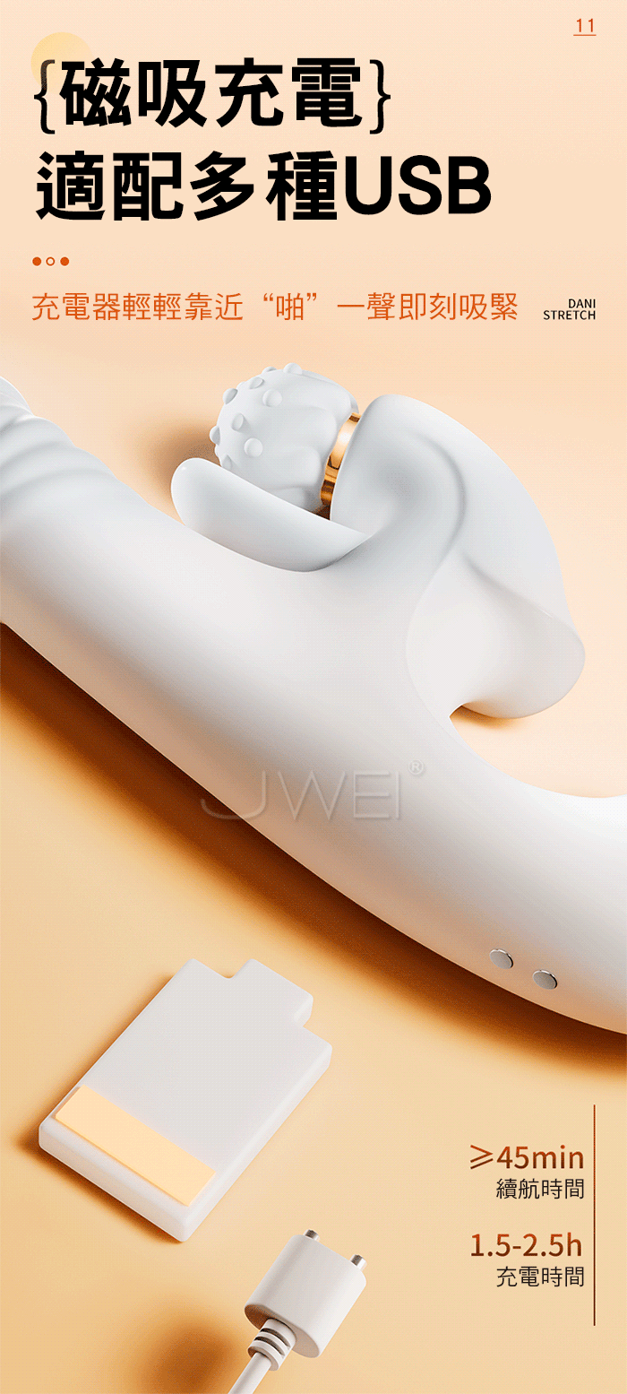 丹妮.8段凸點旋轉揉豆長舌撩震+8段伸縮觸頂多功能智能加溫按摩棒