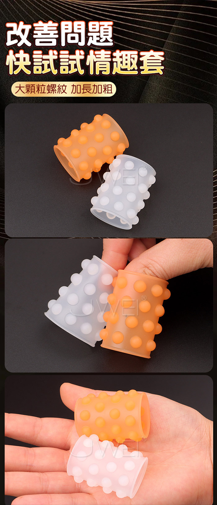 鎖住時間+強化精關+提升摩擦,可增進夫妻、情侶間性福 持續力大大加強,鎖住時間,讓快感來得強烈,顆粒精準按摩,波浪持續不斷 ■材質:TPE ■功能:顆粒刺激,鎖精延時 ■內容:單入裝