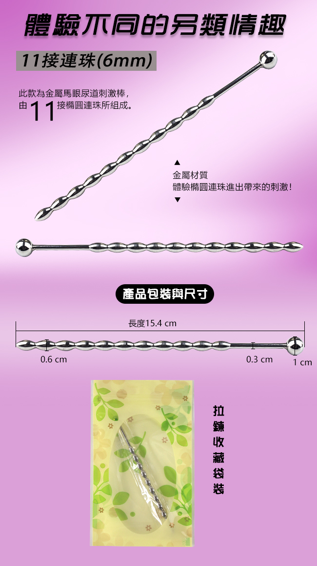| JO禁戀 ‧ 金屬馬眼尿道刺激擴張入侵 - 11接連珠﹝6mm﹞