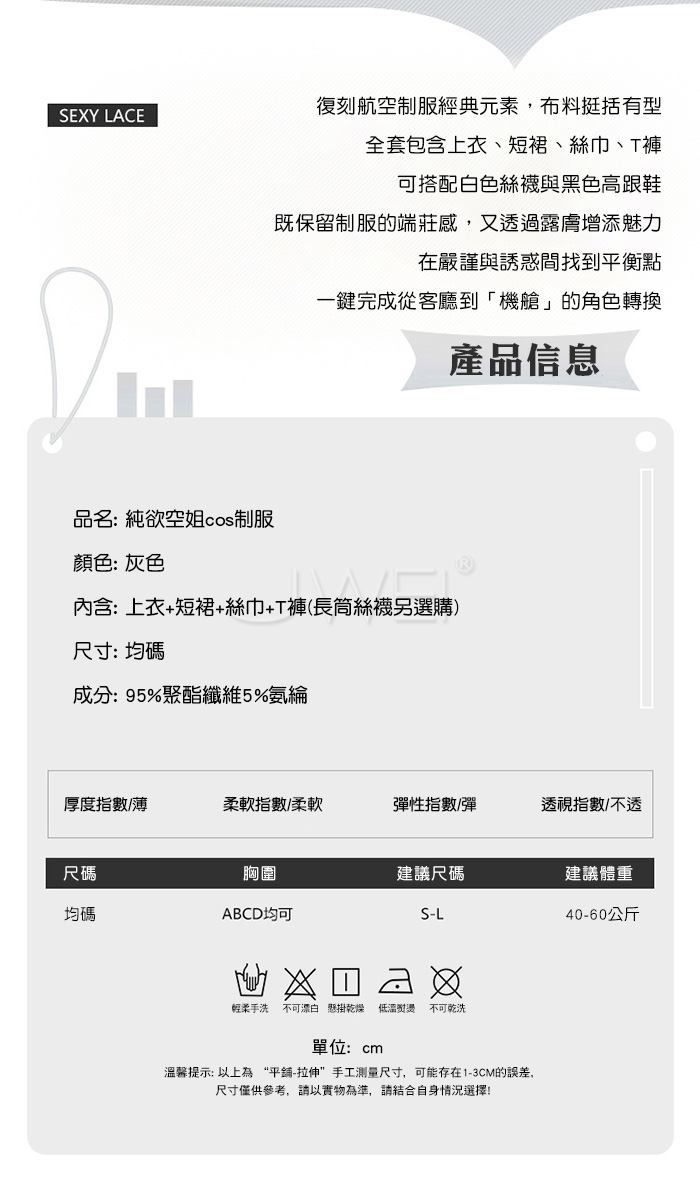 ■內容物:上衣+短裙+絲巾+T褲 ■適穿尺寸:FREESIZE ■彈性:彈 ■未撐開平量尺寸正負誤差1~2cm,1吋=2.54cm ■注意事項:基於保障消費者個人衛生,此貼身衣物恕不接受退換貨。 (如為商品本身暇疵,接受七日內換貨,請勿試穿,謝謝您)