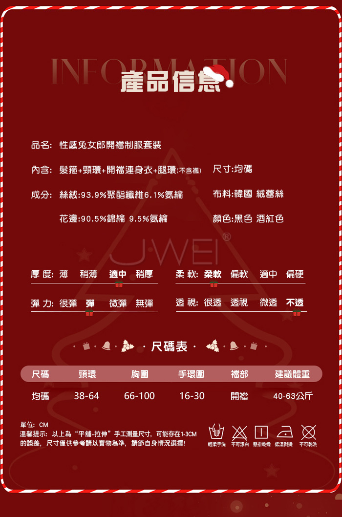 | 耶誕慾兔.蕾絲邊低胸毛球點綴絲絨性感兔女郎開襠連體衣【髮箍+頸環+連身衣+腿環-黑色】