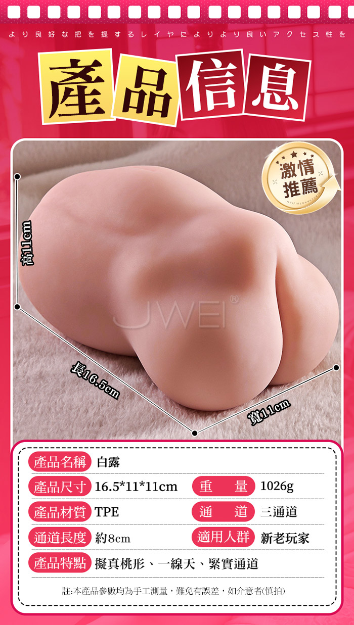 | 白露.一線天擬真桃型 三通道雙子宮新體驗 緊實刺激自慰套 【附贈日本原裝.洗い不要 濃密潤滑液-300ml】