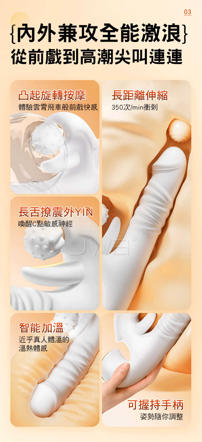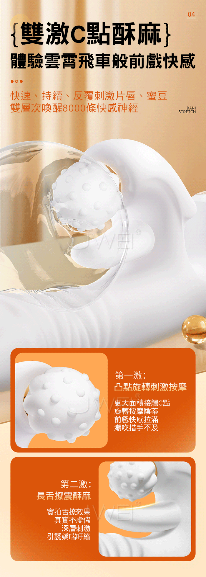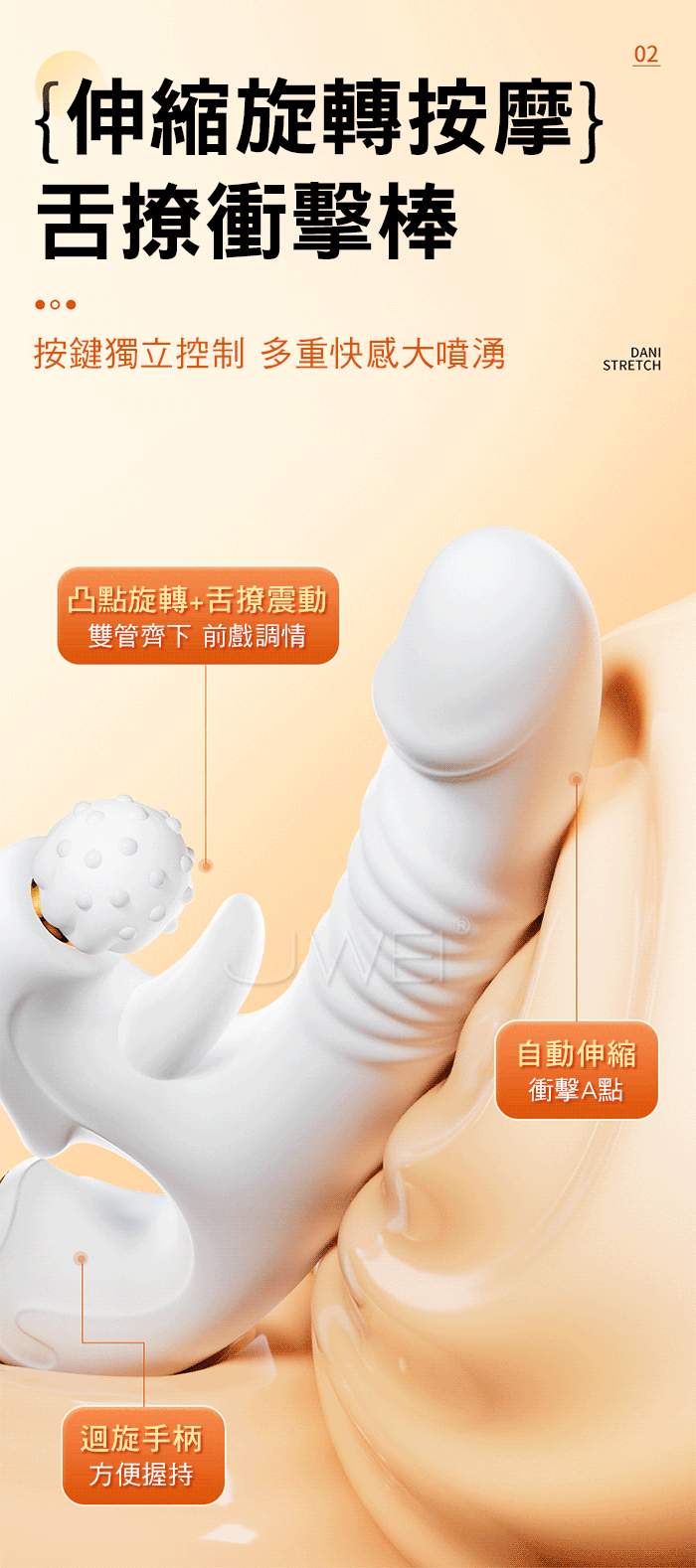 ►您現在的位置:首頁>丹妮.8段凸點旋轉揉豆長舌撩震+8段伸縮觸頂多功能智能加溫按摩棒