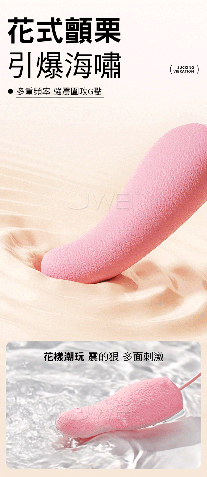 舌潮跳蛋 吸震一體,內外共潮 多點刺激,1+1>2的快樂 綿柔吮吸 動感裹吸,軟糯小嘴 緊緊包裹蜜豆,嘬吸C點 喚醒敏感神經 10頻強震,深入密道探索,多重頻率強震圍攻G點,花樣潮玩 震的狠 多面刺激 強韌拉繩 玩的安心,加選材質不易斷 多份放心,USB直插 方便快捷 強勁續航! 產品規格 ■材質: 矽膠+ABS ■規格: 詳如圖片標示 ■功能: 10頻吮吸、10頻強震、USB直插