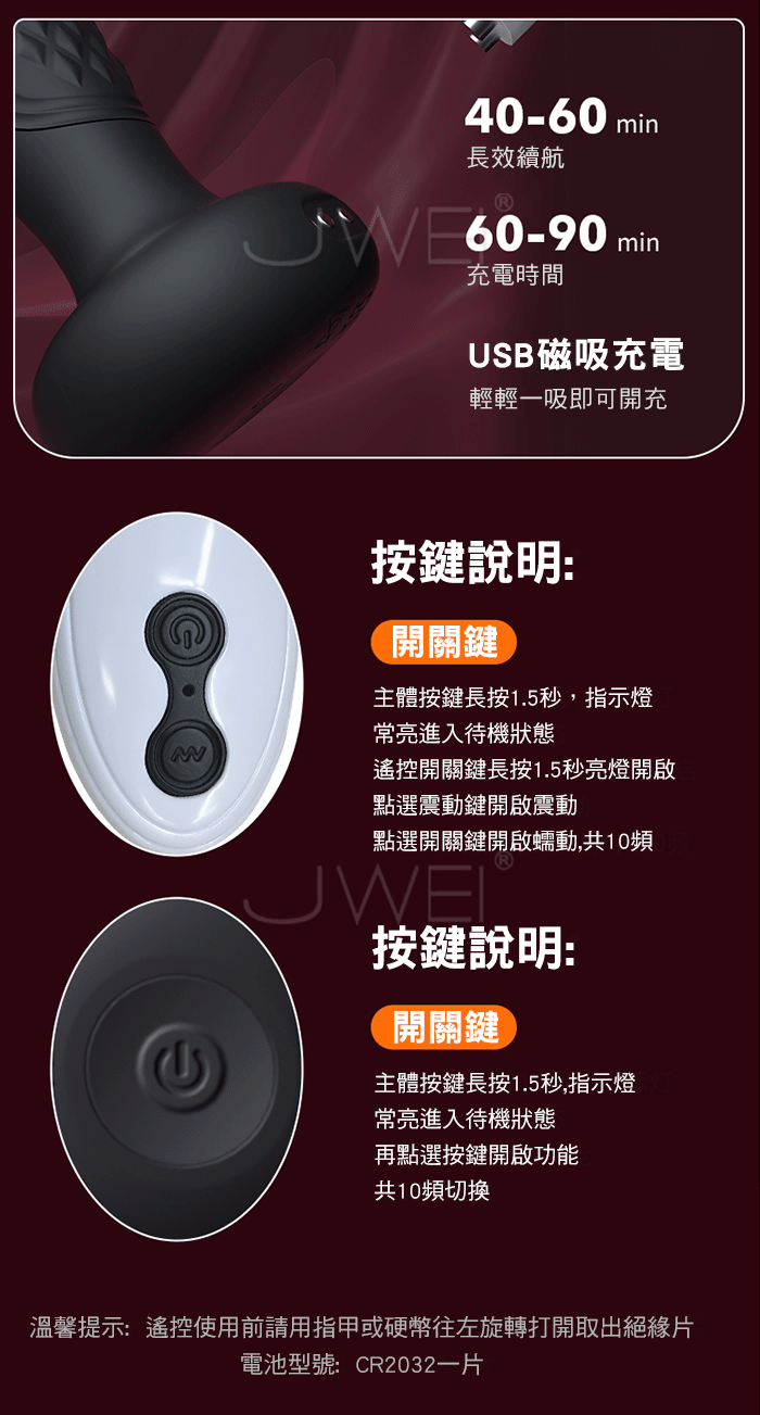 | 後庭蠕動.10頻擬真波浪式蠕動強震 無線遙控後庭肛塞