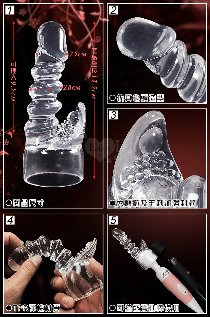※ 別出心裁的特殊造型,會有著截然不同的新鮮體驗! ※ 高素材塑料清洗容易。 ※ 此樣商品可搭配頭部直徑4~4.5cm的AV女優專用棒一起使用。(AV按摩棒需另購) ※ 選購AV按摩棒,敬請參閱相關產品 ※ 顏色:透明白 ※ 規格及構造:詳如圖 ※ 此產品詳細樣式如圖所攝錄,敬請參閱選購