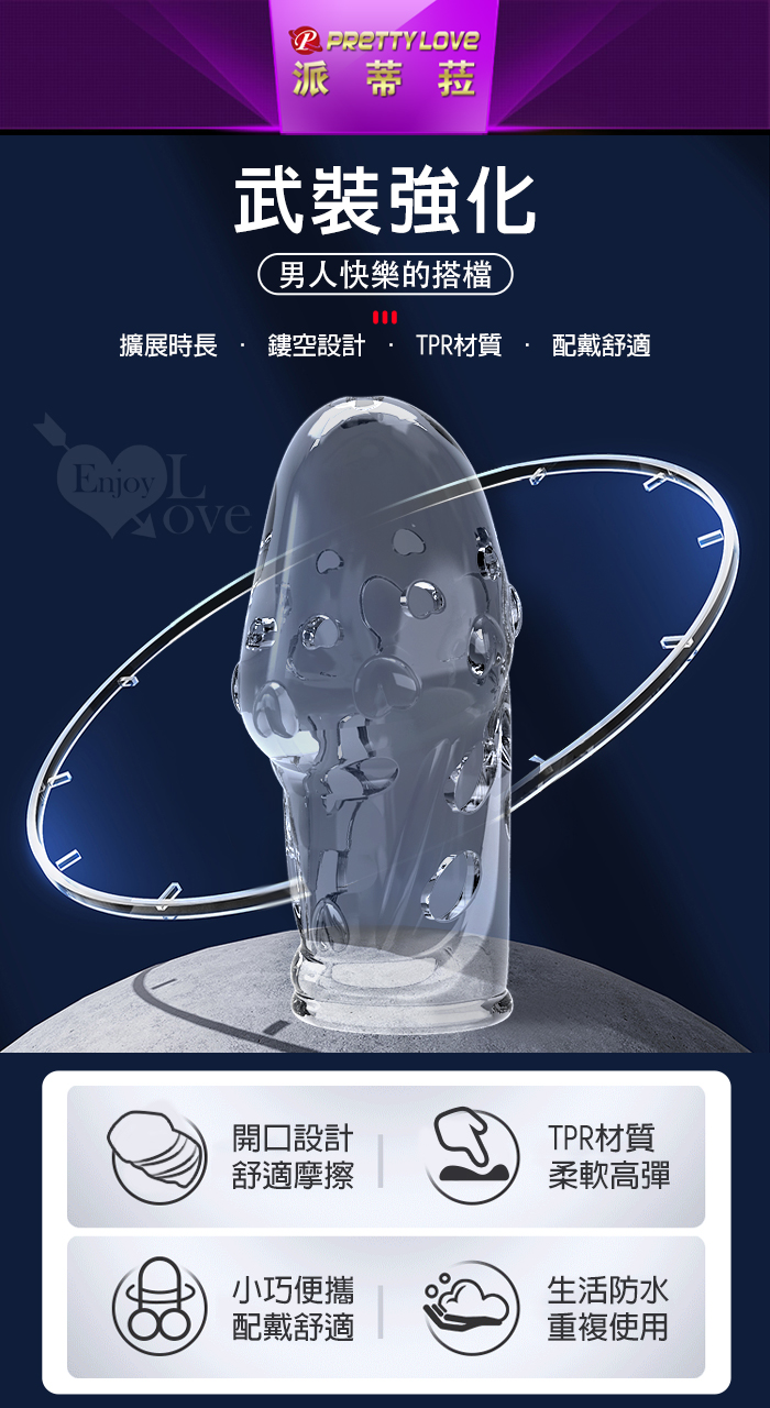 | 派蒂菈 ‧ Farrell 法雷爾 3開口精子發射台 老二增粗束精延時助性水晶加強套﹝透明黑﹞