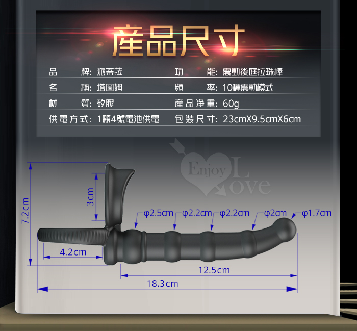 | 派蒂菈 ‧ TATUM 塔圖姆 男用穿戴束精雙套環~10變頻震動後庭拉珠棒