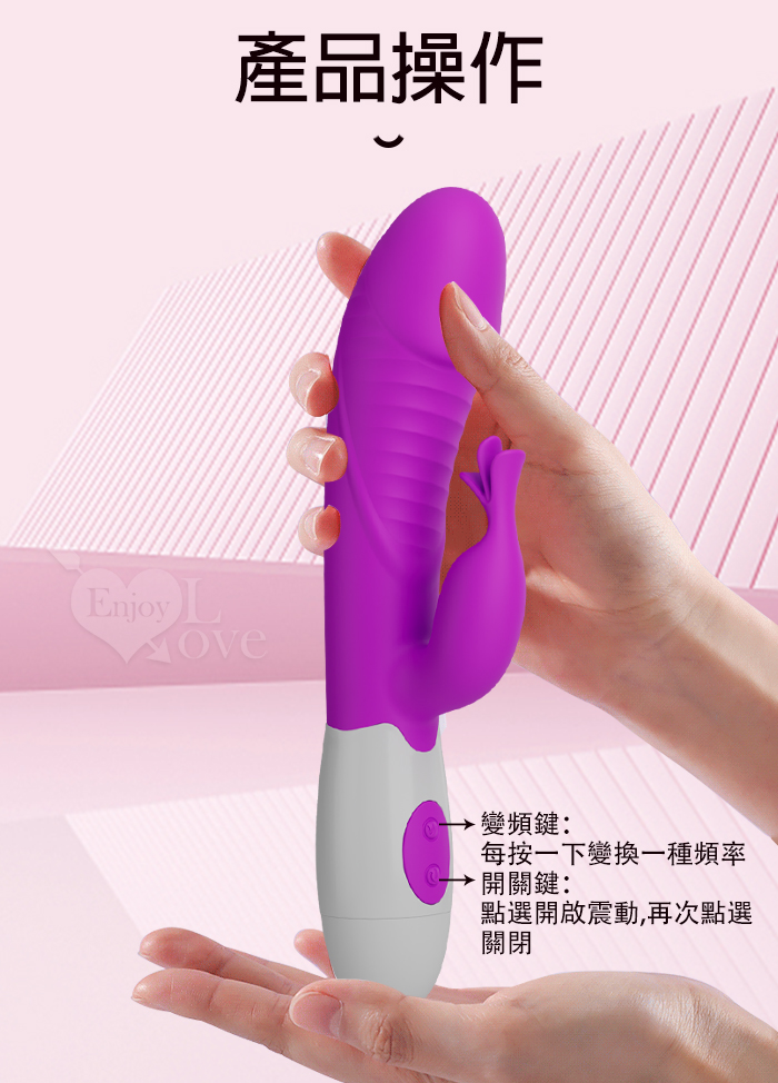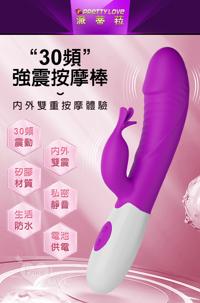 | PRETTY LOVE 派蒂菈 ‧ 頑皮兔 內外雙重30頻雙頭同震按摩棒-洋紅